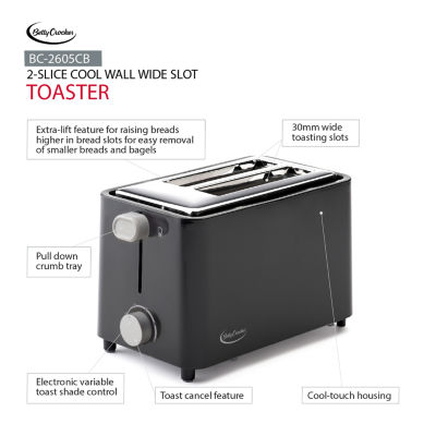 Betty Crocker 2 Slice Cool Wall Wide Slot Toaster
